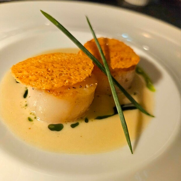 帆立のミキュイ ハーブオイルとクリームソース。ここのお店はお肉以外のこういうプレートもちゃんと美味しいのがいいですね。
