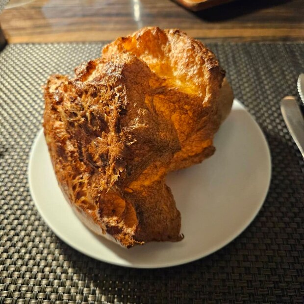 ポップオーバーにはお塩をふったり、バターをつけたりしていただきます。フンワリ軽い食感なので、お肉の前に気持ちをルンルンさせる役割としてちょうどいい!