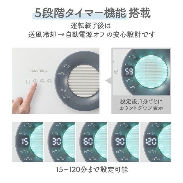 3. 濡れ具合に対応する15〜120分の5段階タイマー機能