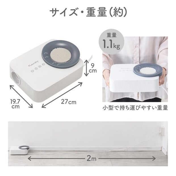 同アイテムは、重さ約1.1kgのコンパクト設計。収納しやすく、忙しい日常でも手軽に靴ケアができ、布団・衣類にも使えるため、1台で複数の生活シーンをカバーします。