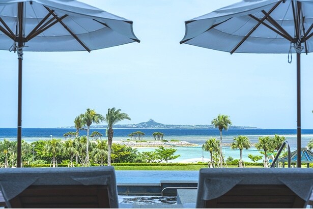 時間を気にせず気ままに過ごすのが「ホカンス」の醍醐味。明るいうちからのんびり温泉につかるのも、また贅沢だ。オーシャンウイング5階の「美ら海の湯」は15時からオープンしているので、エメラルドグリーンの海と伊江島を眺めながら体の疲れをほぐそう。