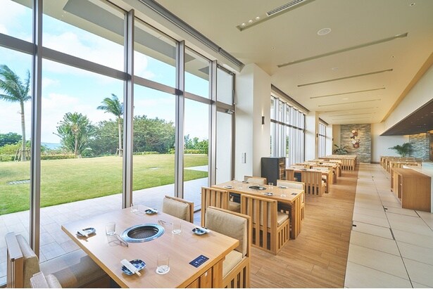 「ホカンス」では食もまた大切なポイント。「オリオンホテル モトブ リゾート&スパ」にはレストランが3つ、バーが1つあるので、ホテルから出かけることなく美食を楽しむことができる。ディナーにおすすめなのが、沖縄の大地で育った島野菜や、県産牛、近海で獲れた新鮮な魚介をダイナミックに味わうバーベキューレストラン「カペラ」。
