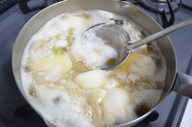 4. もう一度火をつけてアクを取り、かぶが柔らかくなるまで弱火から中火でコトコトと煮る。