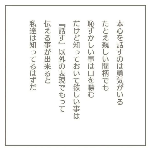 本心を話すことは、誰にも勇気が必要です。でも、例え話さなくても、本音が伝わることもあるのです。
