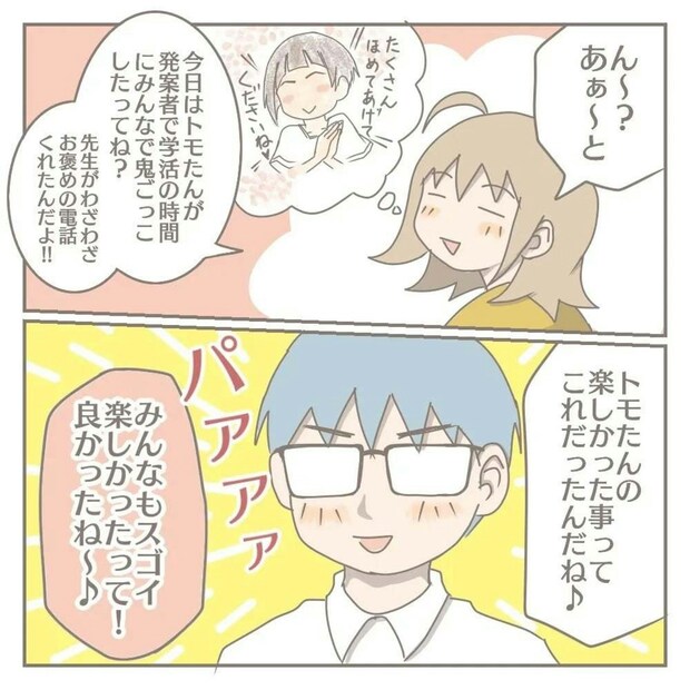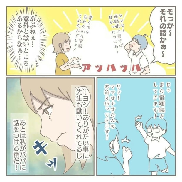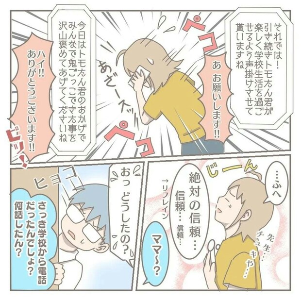 担任の先生から、今日のできごとを聞き学校側のスムーズな対応に感謝をするヨカさん。トモたんの学校生活への心配ごとは一気に軽くなりました。