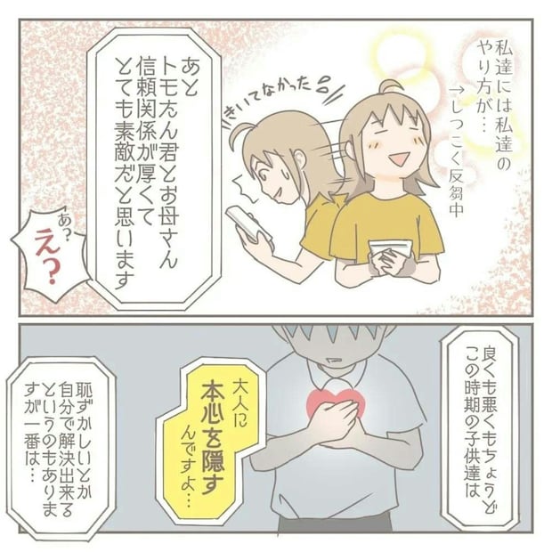 本心を隠しがちな難しい年ごろですが、トモたんは、ヨカさんに本音を話せていると言います。それは、信頼の証拠だと担任の先生に言ってもらえました。