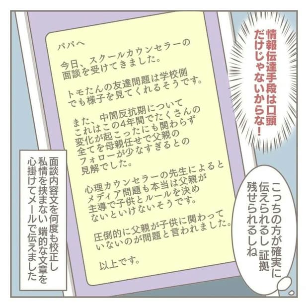 学校が迅速に動いてくれていることに深く感謝して、改めて夫と向き合う決意をします。