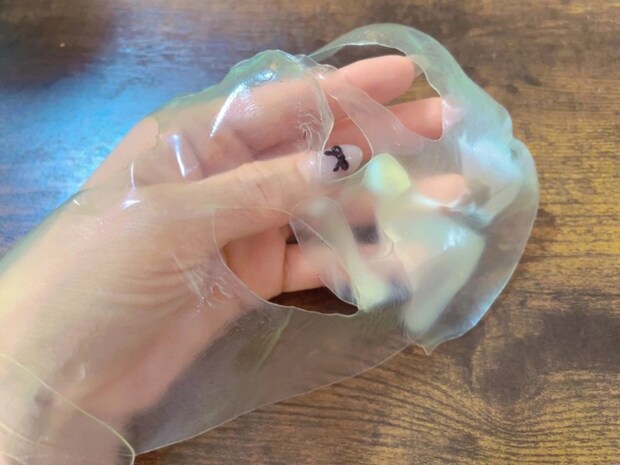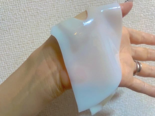 「数時間後のマスクは美容成分が肌に浸透したのでこんな感じの透明になります!今までになく新鮮なアイテムでした♪」