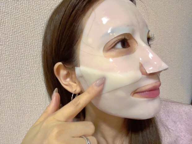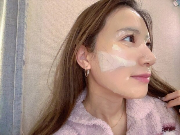 「ずっと気になっていたパック!美容液成分を固めてゲル状にしてあるので、それをお肌に浸透させるために3時間以上貼ったままにするんです。美容液が溶けだして肌に浸透してくると、だんだんマスク自体は透明になってくるので、経過も楽しめる♡貼って寝るだけでぷるっぷる!忙しいママでもこれならじっくりケアできると思いました!」