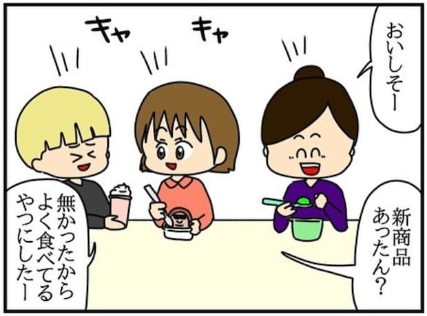 大学時代に同期のみんなでコンビニスイーツを買ったときのこと。チコちゃんはダイエット中で何も買わなかったことを思い出します。