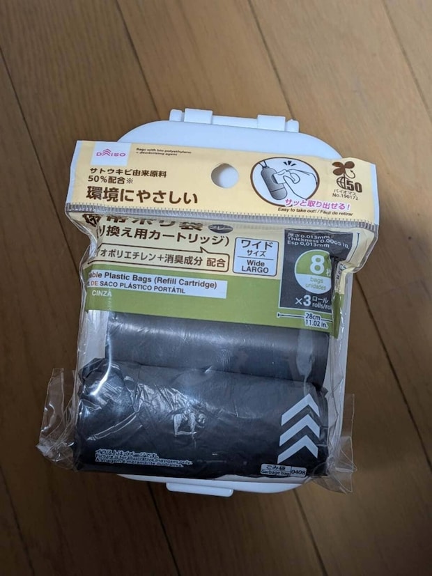 ロール式ゴミ袋は別売りで、同じくダイソーで110円で購入できます。
