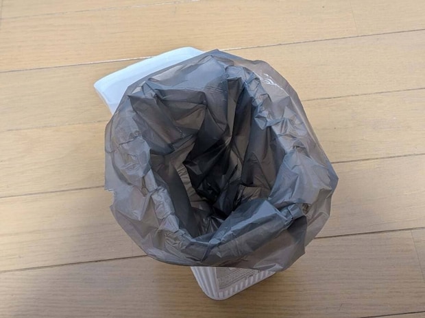 中からゴミ袋を引き出して、セット完了!ゴミ箱が汚れない上に、新たな袋を探す手間も省けて、ゴミ捨てのプチストレスがなくなる〜!