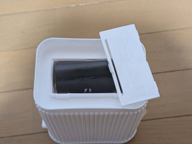 ゴミ箱の底の蓋を取り外し、ロール式ゴミ袋を収納して、蓋を閉めます。