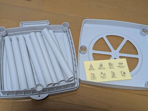 袋には、台座と蓋、ポール、分別用シールが入っています。