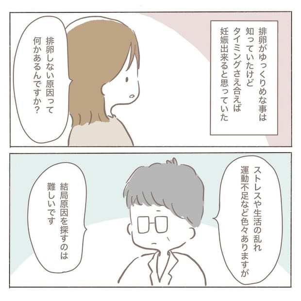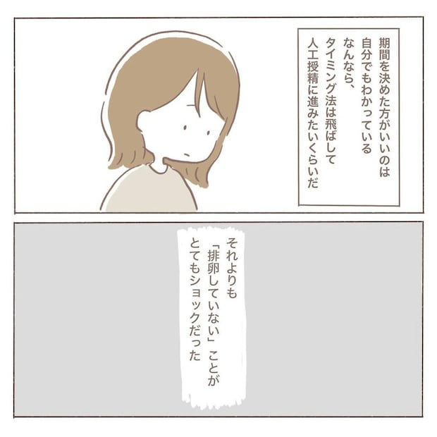 排卵していないと知り、ショックを受けるcoromoさん。タイミング法で妊娠できた1人目のときとは、状況が大きく違うようです。