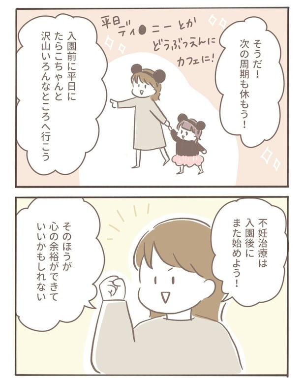 育児と不妊治療の両立は想像以上に負担がかかります。娘の預け先の確保、急な通院、細かなスケジュール調整など、日々気を配ることが尽きません。近くに頼れる両親がいないcoromoさんにとって、治療と育児を同時に進める生活は、心にも体にも重くのしかかっていました。