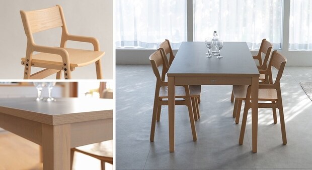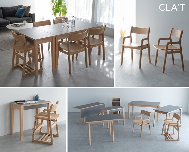 CLA’Tシリーズのチェア・テーブルとデスクの脚部には、耐久性に優れたニレ無垢材を使用。反りや割れが起きにくく、時間とともに味わいが増す素材です。一本一本異なる美しい木目が、空間に温かみを与えます。