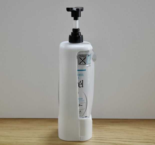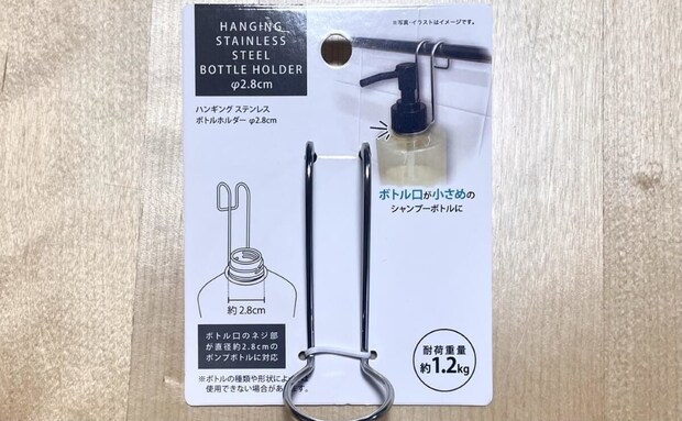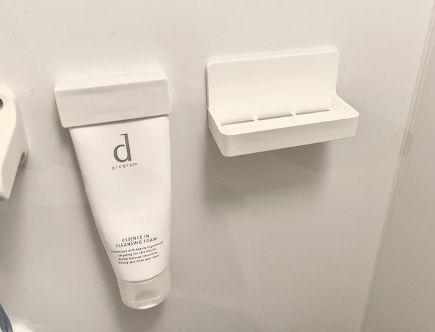耐荷重は約150g。120gの洗顔フォームを取り付けてみましたが、全くズレ落ちる気配はありません。