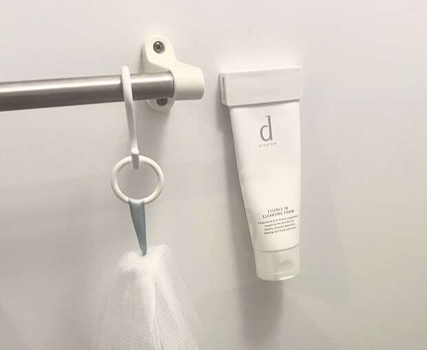 洗顔フォームや歯磨き粉など、気がつくと水回りに増えがちなチューブたち。棚に直置きすると、水垢などの汚れがついてしまって衛生面が気になりますよね。そんなチューブアイテムをそのまま壁にくっつけちゃう、驚きの便利アイテムを発見しました!