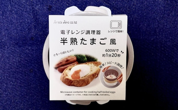 使い方は、容器に卵を割り入れ、上から水を小さじ1杯加えてフタをし、電子レンジで加熱するだけ。目安の時間は500Wで1分、600Wで50秒となっています。