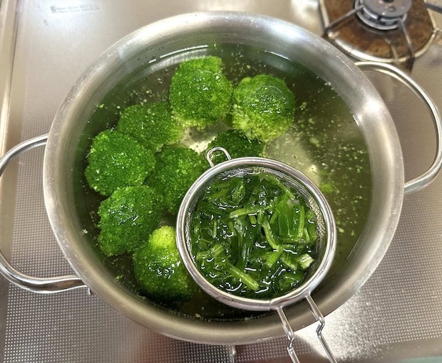 セリアの「ミニゆでザル」で超時短に!同時に副菜作りやパパッと出汁取りが叶う!