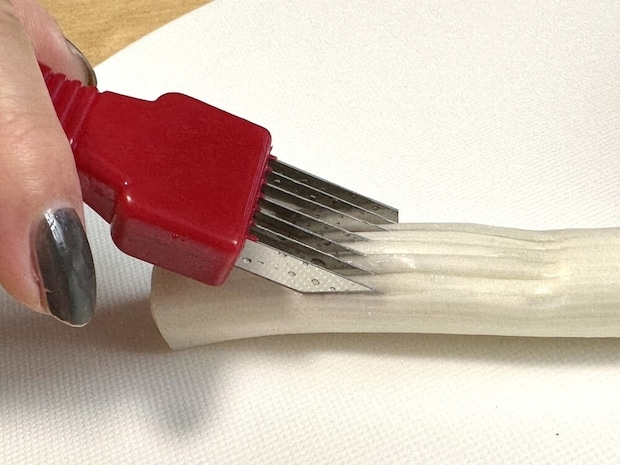 使い方は簡単。ネギの白い部分に、縦に沿わせるようにカットしていきます。
