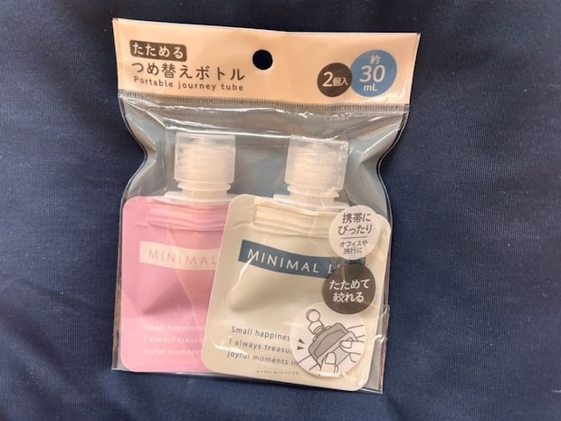 シャンプーなど、普段使っているものを持って行きたいけれど、荷物がかさばってしまう...。そんな悩みを解決するのがこちらの「たためる詰め替えボトル」。