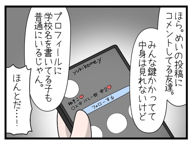 長男は冷静に相手のことを分析し、姉の方は「やっぱり」と呆れた様子。母親は、娘の情報が漏れてしまったのはどうしてか疑問に思います。