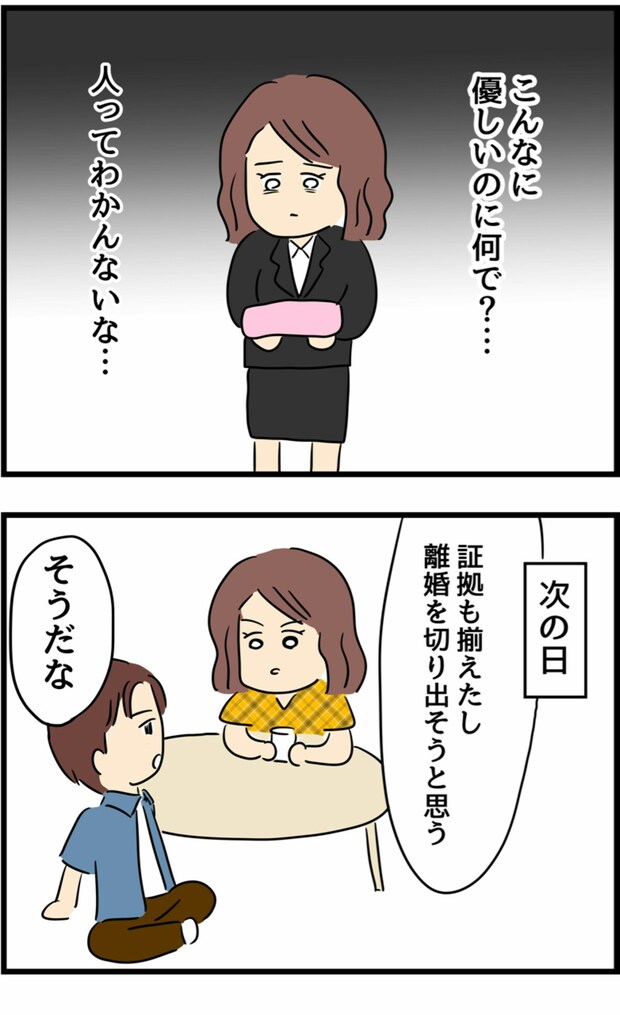 普段はとても優しくて思いやりもある夫…裏での姿を知ってしまった今、その優しさを前にとても複雑そうなリナさんの心境が伝わってきますね。