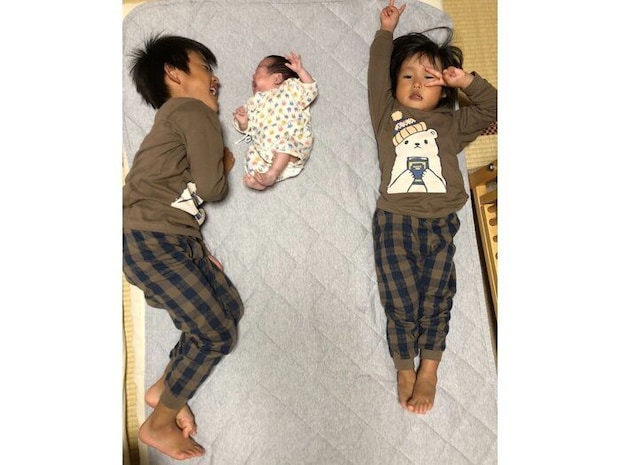 「私の産後入院中から、夫は私が送るつきのの写真を上の子たちに見せて『早く会いたいね』とみんなで楽しみにしてくれていたようです。上の子たちは夫と一緒にベビーベッドを組み立てたり、つきののための準備をしてくれていました。退院後も、おむつ替えをしていると新しい紙おむつを持ってきてくれたり、お手伝いしてくれようとする気持ちに成長を感じて、うれしかったです」(りささん)