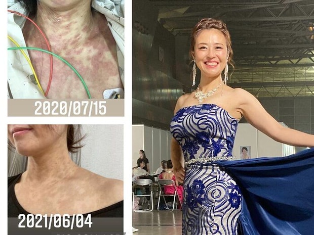 そんなとき知り合いから『ミセス・オブ・ザ・イヤー』というミセスコンテストに出てみないかと誘われました。見た目だけでない女性の生き方を子どもたちに見せられたら、という思いで、チャレンジすることに。あざが見える背中が思い切り開いたドレスを着て人前に立とうと思ったんです。結果は日本大会のファイナリストに残ることができ、大きな自信になりました。上の子たちも『すごくかっこいい!』と言ってくれ、本当に出てよかったと思います。