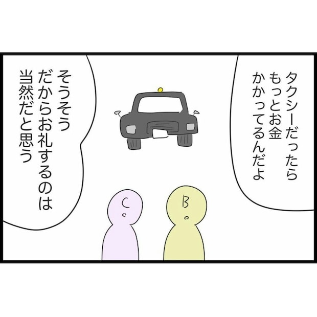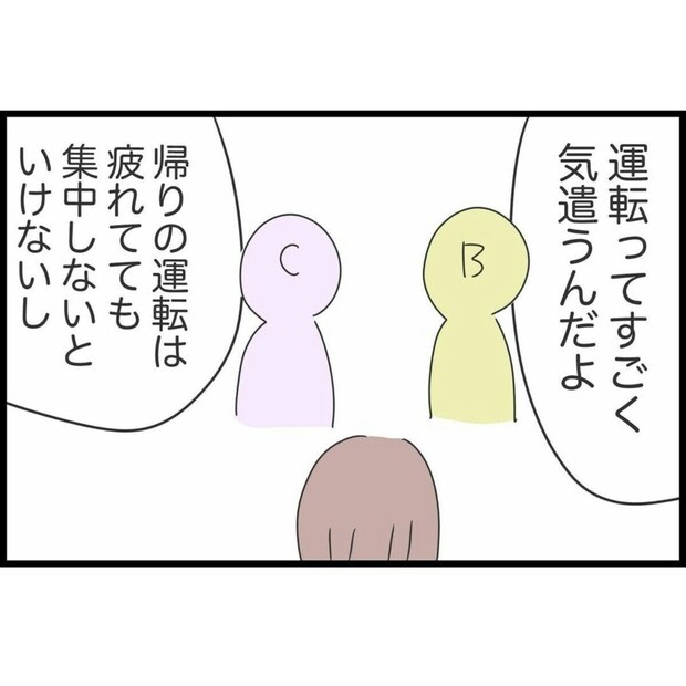 運転がいかに大変かを聞き、すみれに悪いことをしていたと気付いた友人。普段運転しない人だと運転にかかるストレスや車を維持するためのお金のことなどわからなくても仕方ないとは思います。しかし、わからないから気づかいはしないというのは良くないですね。車を出してもらうことも運転してもらうこともやってもらって当たり前ではありません。あくまでも好意でやってくれているのだということを忘れずにいたいですね。
