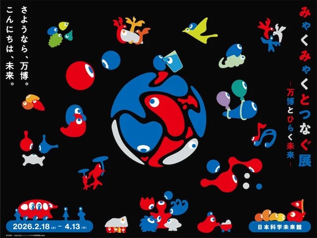 「大阪・関西万博」を振り返り、その成果を未来へとつなぐ企画の第一弾。家庭でつくる霜降り肉・iPS細胞による心筋シート・ミライ人間洗濯機など、未来の食やヘルスケアの先端技術を実物展示するほか、市民参加を促した「こみゃく」が生まれるきっかけともなった万博の「デザインシステム」を紐解く。二次創作された、可愛い「こみゃく」アートは必見。万博に行けなかったというファミリーも行った気分を味わえるはず!