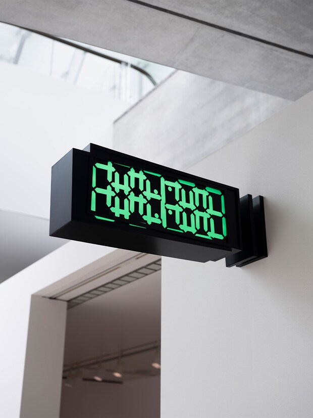 Ryan Gander・Chronos Kairos, 03.02・H 27.0 x W 78.0 x D 15.0 cm・2025・Aluminium, acrylic, LEDs・TARO NASU・©Ryan Gander, Courtesy of the artist, Pola Museum of Art, Hakone, and TARO NASU, Photo by Shu Nakagawa