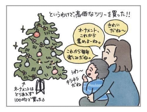というわけで、高価なツリーを買ってしまいました!といっても、数千円ではなく2万円ぐらいものを買ったという程度ですし、オーナメントはとりあえず100円均一で適当に買ったのですが(笑)。でも、キラキラ光る立派なツリーを親子で眺めていると、多幸感があり、いいもの買ってよかったなーという気持ちに。これから毎年このツリーを楽しみに飾れると思うと、ワクワクしてきます!今は旅行もなかなか行けませんが、行けるようになったら、親子で訪れた旅先でオーナメントを買ったりしていきたいなー。