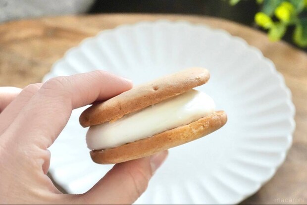 ビスケットならではのほろほろとした食感を残しながらも、しっとりと口溶けの良い生地に感動……!小麦の素朴な味わいと、ミルキーなクリームのほどよい甘さがお互いの良さを引き立てます。