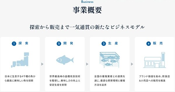 日本近海には4,000種以上の魚が生息し、その中には極めて美味であるものの、安定的な漁獲や養殖が困難な「幻の魚」が多く存在している。同社は世界最先端の品種改良技術や養殖手法を駆使し、これらの魚の“安定生産”と“美味しさの飛躍”を実現していく。