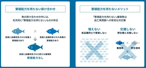 「夢あじ」は、先天的に繁殖能力を持たない「一代限りの養殖魚」となる。そのため、万が一自然災害などで魚が生け簀から逃亡した際にも、「夢あじ」が自然界で増えることはないという。また、野生のカイワリやマアジとの交配が発生することもなく、生態系への悪影響を防ぐことができる。