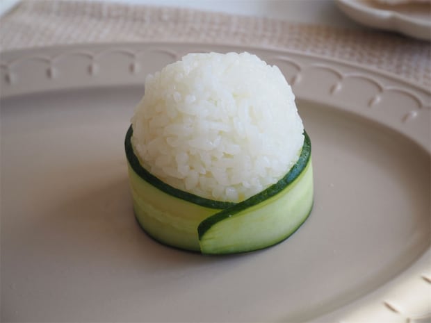 きゅうりは、薄い方がおにぎりに巻きやすいです。