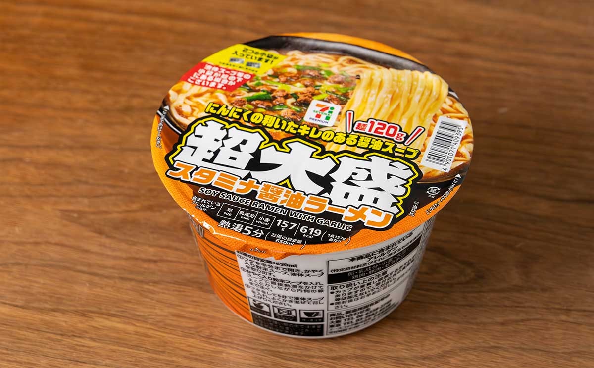 セブン-イレブンの超大盛カップ麺シリーズから登場した本商品は、ポークをベースにオニオンのうまみ、醤油のコク、にんにくをしっかりきかせることで濃厚な味わいに仕上げたカップ麺です。