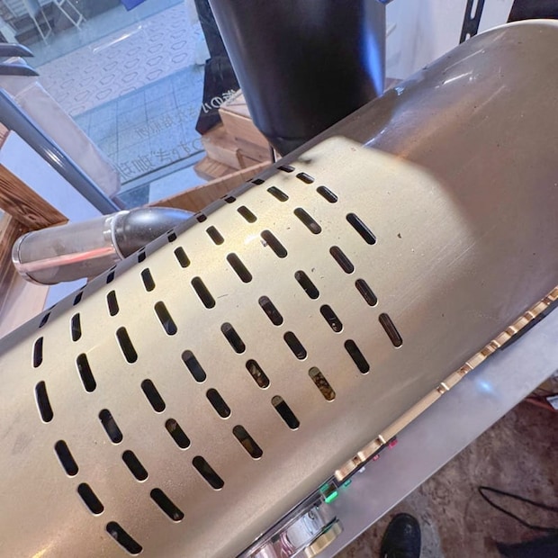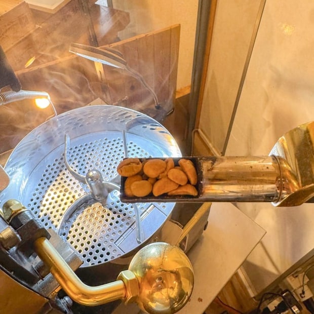 つむぎでは、豆がまんべんなく焼けるように半熱風で焼くそうです。