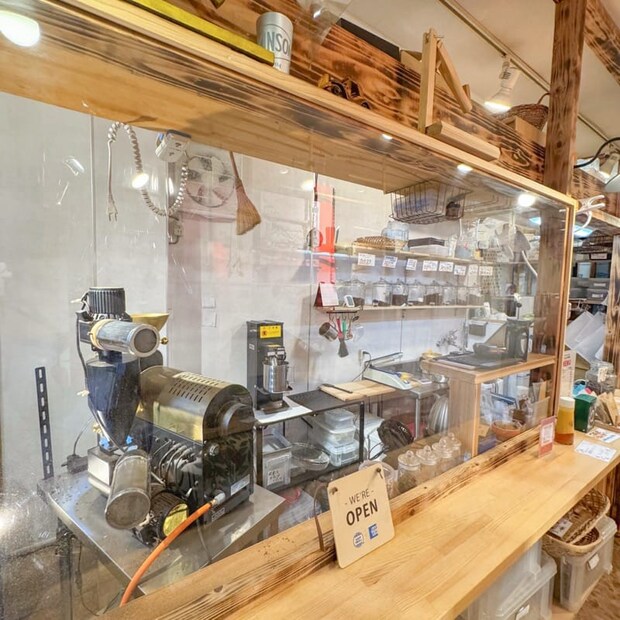 入ってすぐのガラスの向こうには、焙煎専用の機械が。