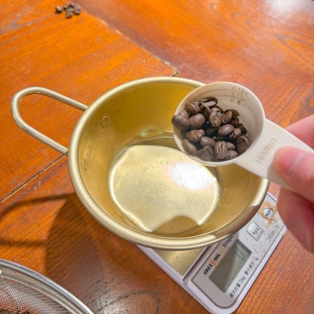 ハンドピックをした状態の良い豆を杯数分だけ、グラムを量っていきます。