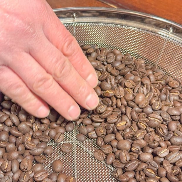 冷ました豆をザルに取り出し、先ほども行った欠点豆を取り除くピッキングをしていきます!