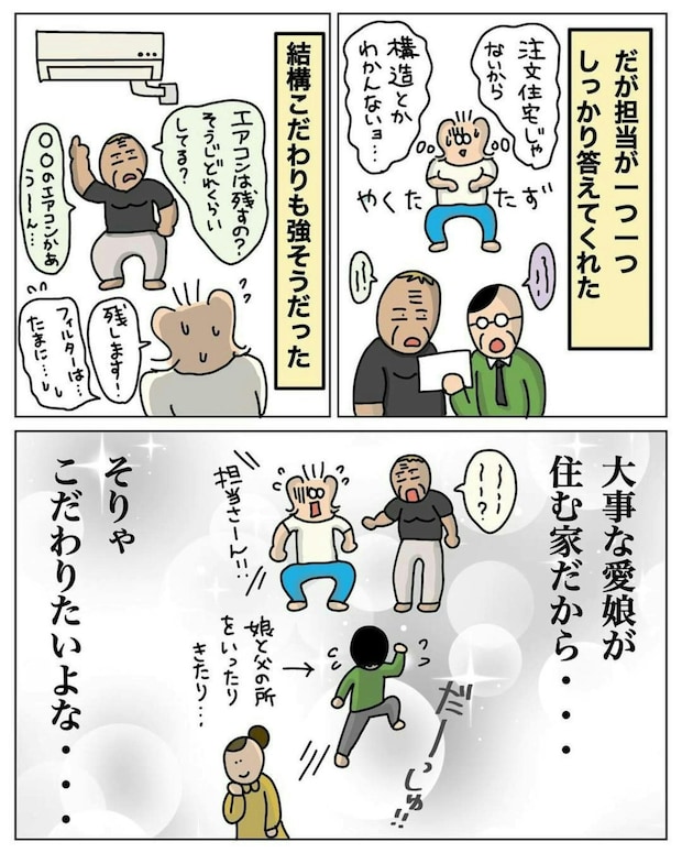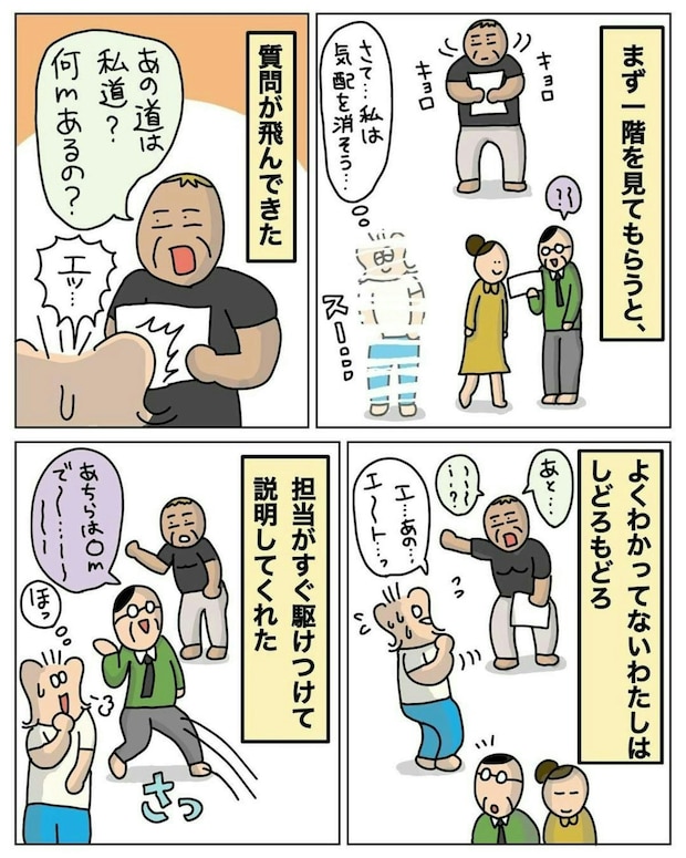 購入を検討しているのはご夫婦ですが、実際に内見に訪れたのは、妻とその父親だったようですね。さらに、専門的な質問の数々に、おおえもんさんもタジタジに…。担当者がしっかり対応してくれたので、よかったですね。