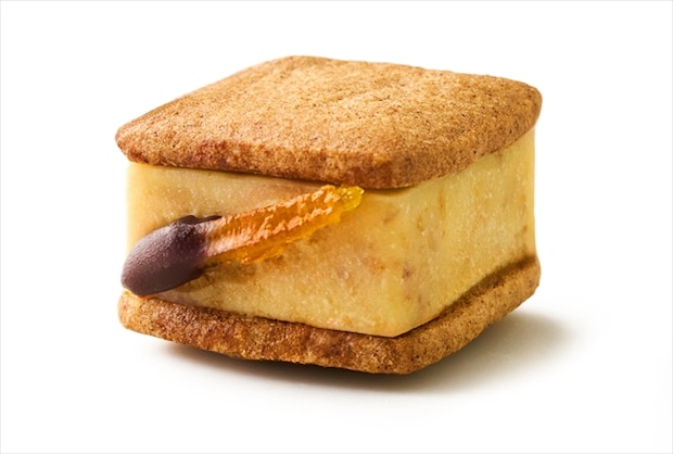 お酒とも相性抜群な「清見オレンジ×3種のナッツ」。和歌山県産の清見オレンジをまるごと味わいつくすことができるフレーバーです。果肉のジャムに加え、自家製のオランジェット(皮の砂糖漬け)をあしらいとしてトッピング。くるみ、アーモンド、カシューナッツの3種のナッツが、バタークリームに心地よいリズムと深いコクを与えます。