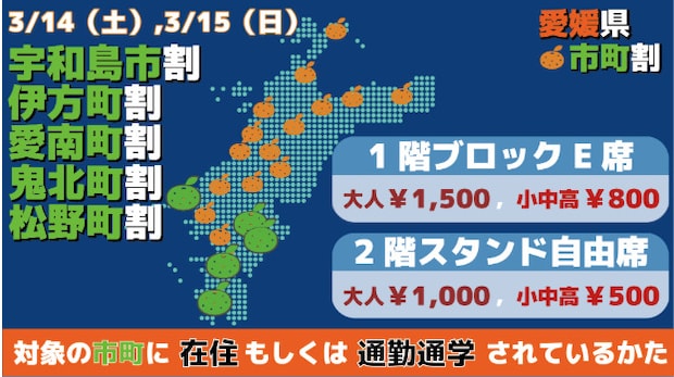 宇和島市・伊方町・愛南町・鬼北町・松野町にお住まい、または通勤・通学されている方は、当日券を特別価格で購入可能です!