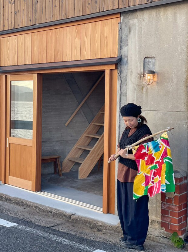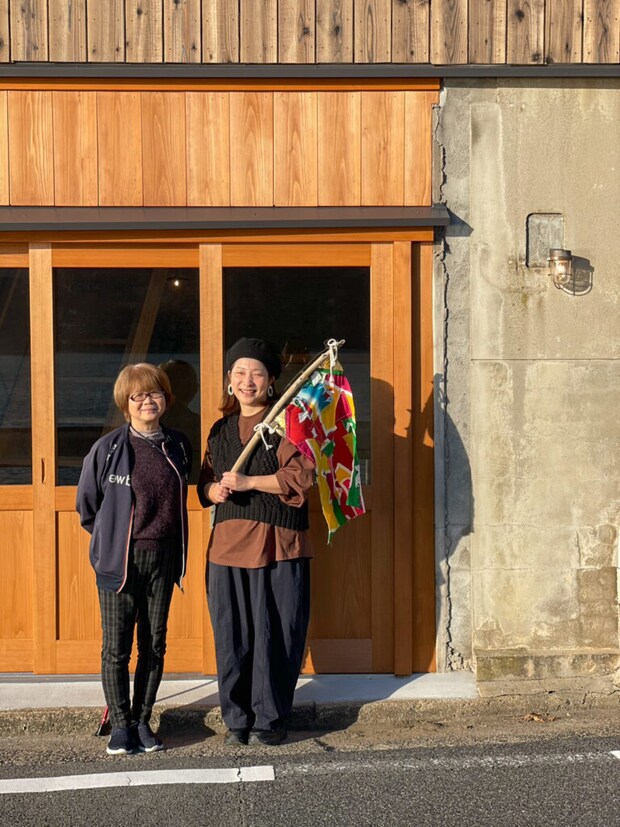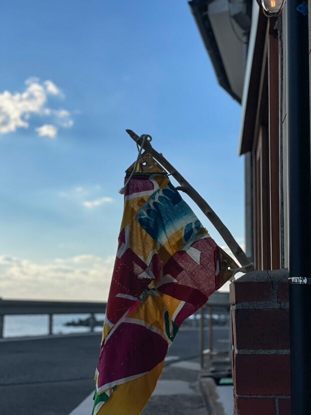 出張美容室OPENのときには、オーナーさま手作りの大漁旗をリメイクした旗が。