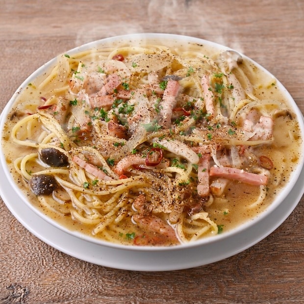 溢れんばかりに盛り付けられた濃厚スープに、モッチモチパスタが絡み合い、ひと口食べれば夢中になる“沼系”スープスパが誕生しました。