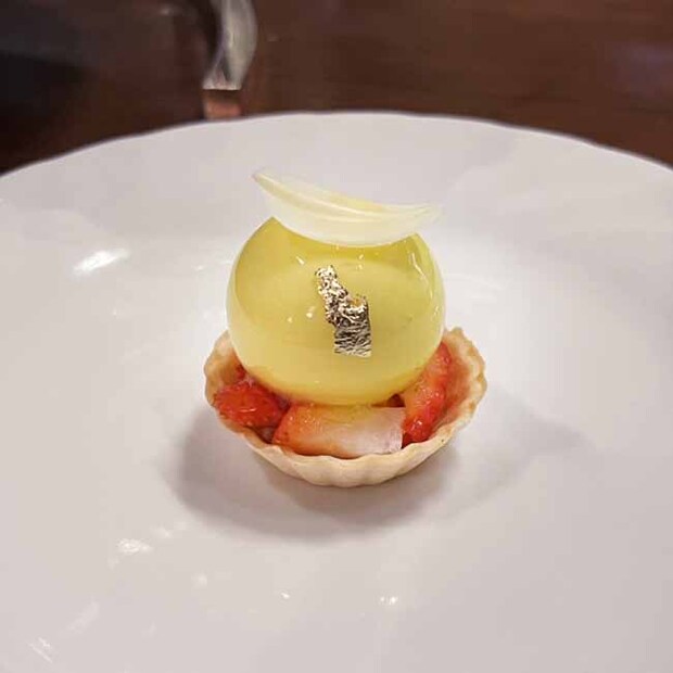 タルト生地は薄くサクッとしていて、ムースのぷるっとした食感とのコントラストも楽しい。中に敷き詰められたいちごのおかげで、後味まで軽やか。スイーツが続いても疲れにくく、次のひと口へ自然と手が伸びる1品です。